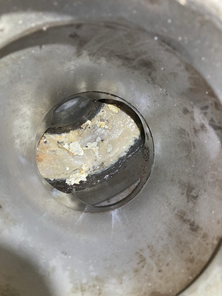 米粒、野菜くず、肉片などが油脂と混ざることで「ヘドロ状の塊(スラッジ)」を形成し、完全な詰まりへと発展します。