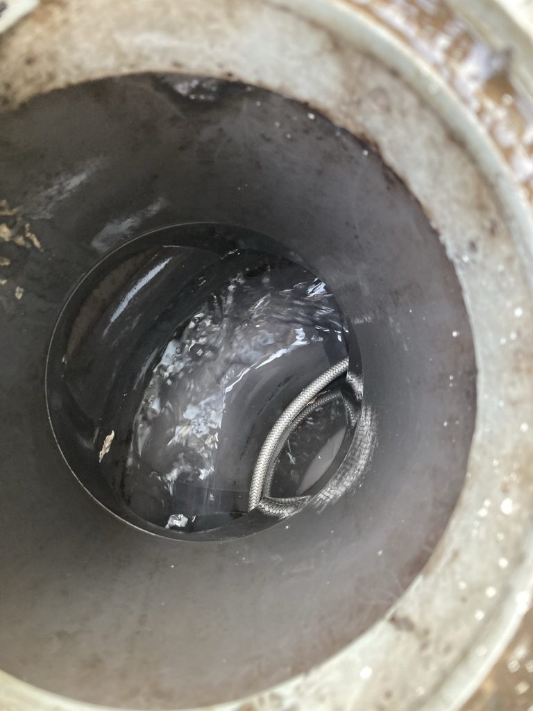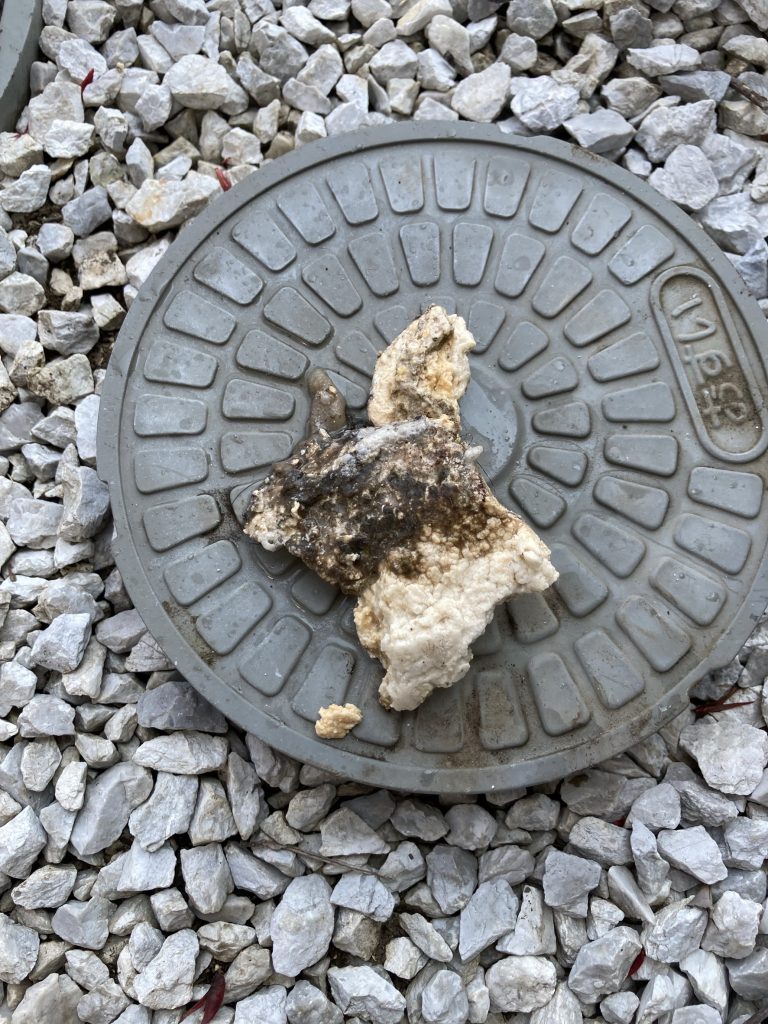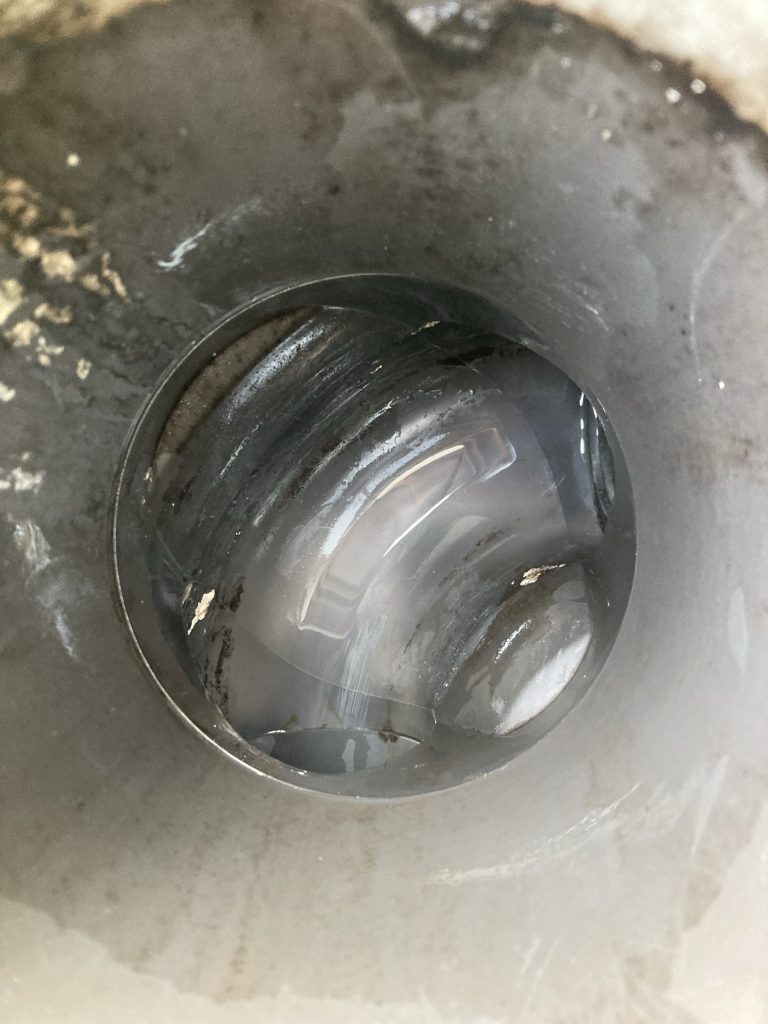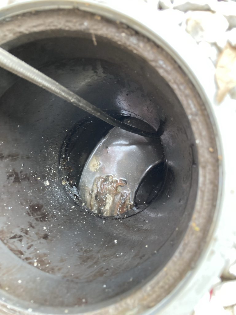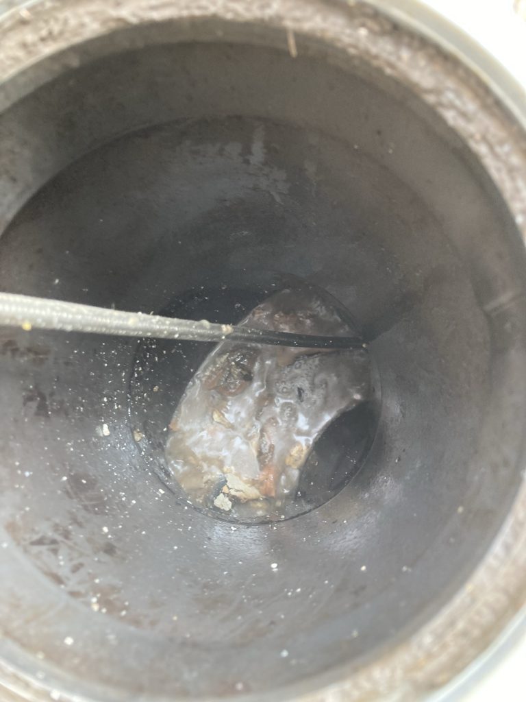今回は戸建てにお住まいの方からの台所が詰まってしまい流れないとのご依頼でした。間取りが建物の一番奥側に台所がある作りのため台所系統の排水管が一番距離が長い構造になっていました。築年数は12~13年程とのことで、以前にも一度台所の流れが悪くなってしまいその際は別業者に依頼をしたようですが、約5年程で再発してしまったようです。その時には高圧洗浄はしていなかったようなので一部取り切れず排水管内部に油脂汚れが残ってしまったのかもしれませんね。