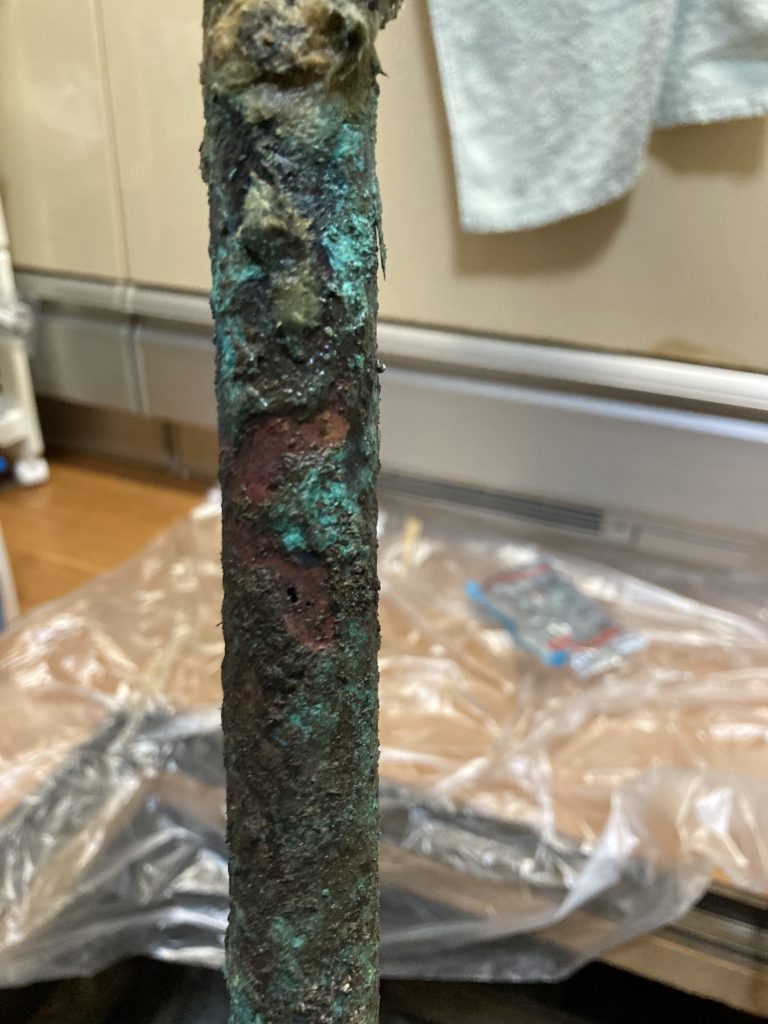 それにしても既存管の保温材を剝がしたら結構腐食が進行していたので、あまり腐食していない綺麗な銅管の箇所を見つけ出すのに思いのほか苦労しました。