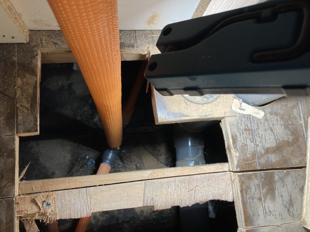今回のようにマンション、アパートの配管更新工事は基本的には入居者様が住んでいながら工事するケースが大半なので入居者様の御協力なしでは成り立ちません。その中で入居者様の負担にならないよう出来る限りシンプルな配管ルートの見極めが非常に大事になってきます。こちらの物件は床高が比較的ある物件だったためすべて床下で隠蔽配管することが出来ました。